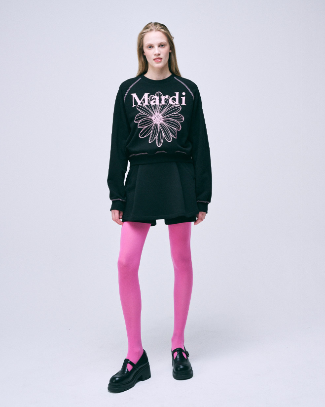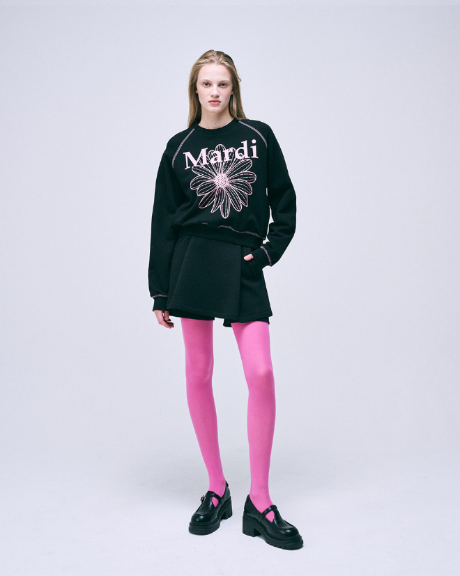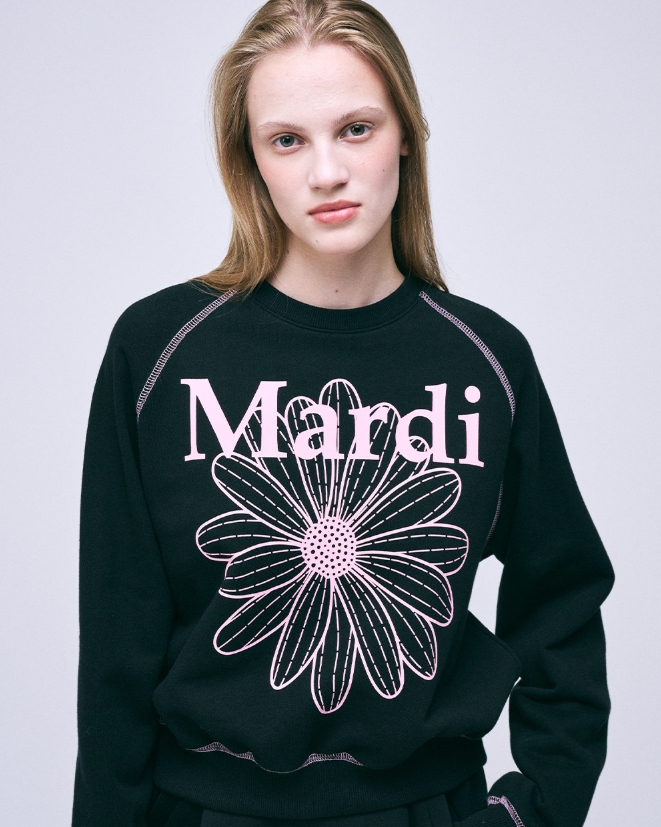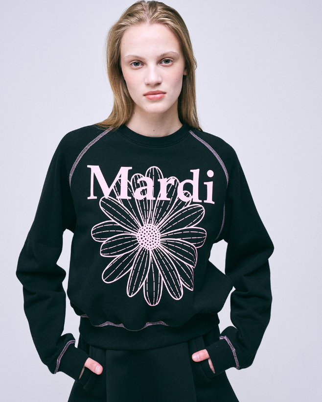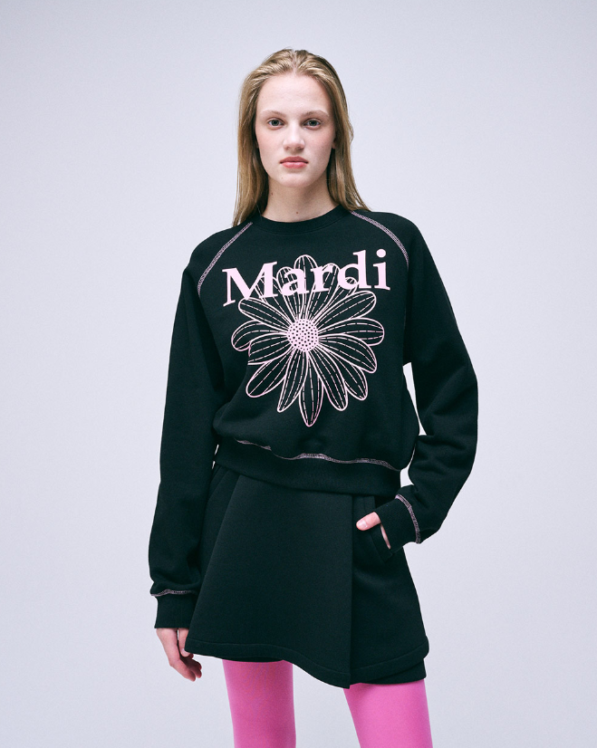 Mardi Mercredi Sweatshirt Raglan Flowermardi Black Pink