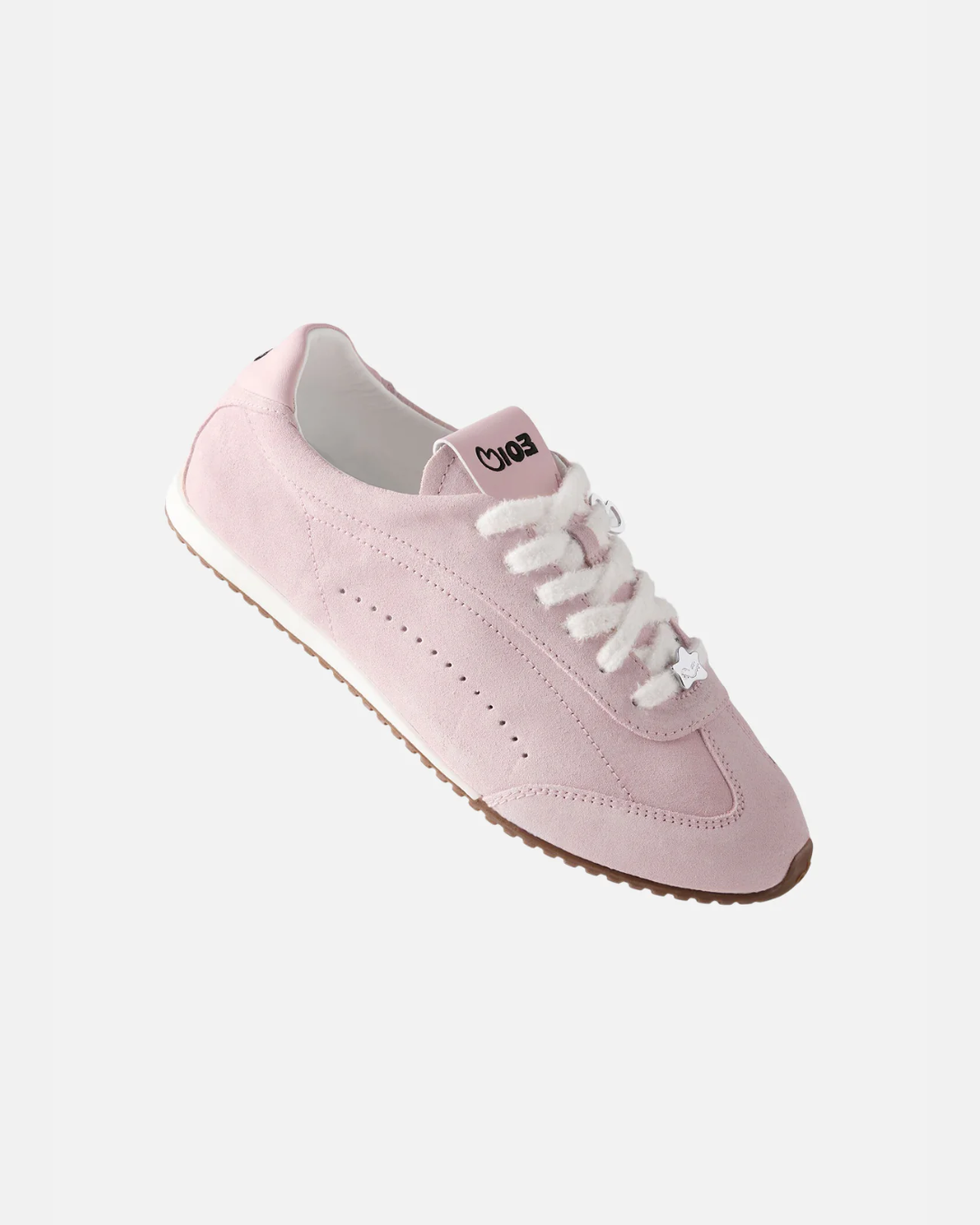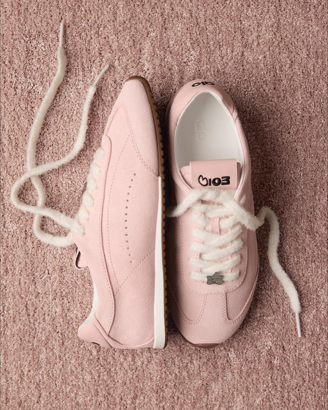 ALO 與 Jisoo 合作帶來的特別版 Sunset Sneaker,帶來了粉嫩迷人的「Bloom Pink」,保留麂皮材質,搭配焦糖色的薄底設計,既時髦又搶眼,完美讓少女心爆發!值得一提是,鞋帶上的金屬星形銀飾靈感來自 Jisoo 親自創作的可愛角色「Shumon」灰塵精靈。各位 Blink 知道鞋舌上「103」是代表什麼嗎?(那是 Jisoo 的生日喔!)